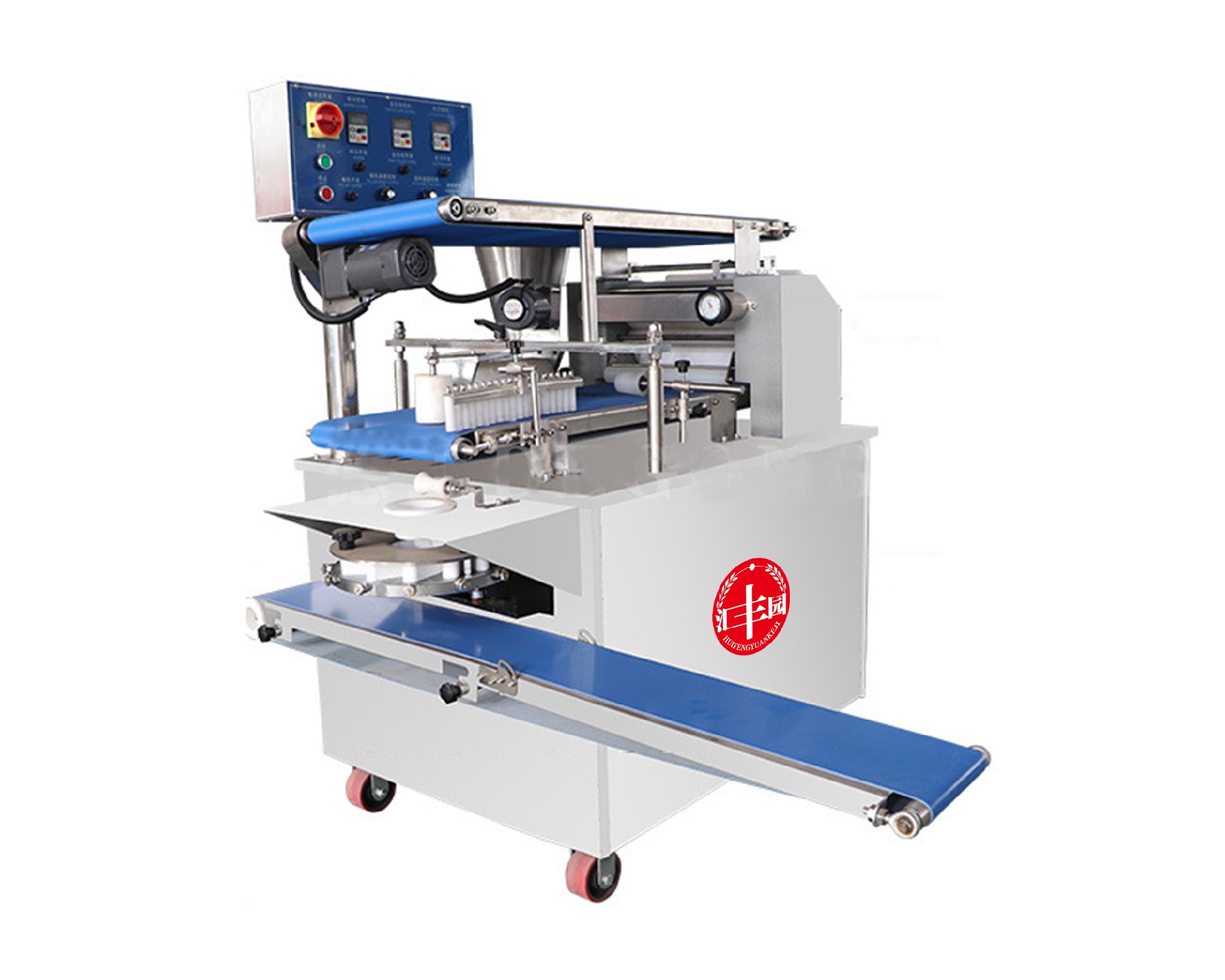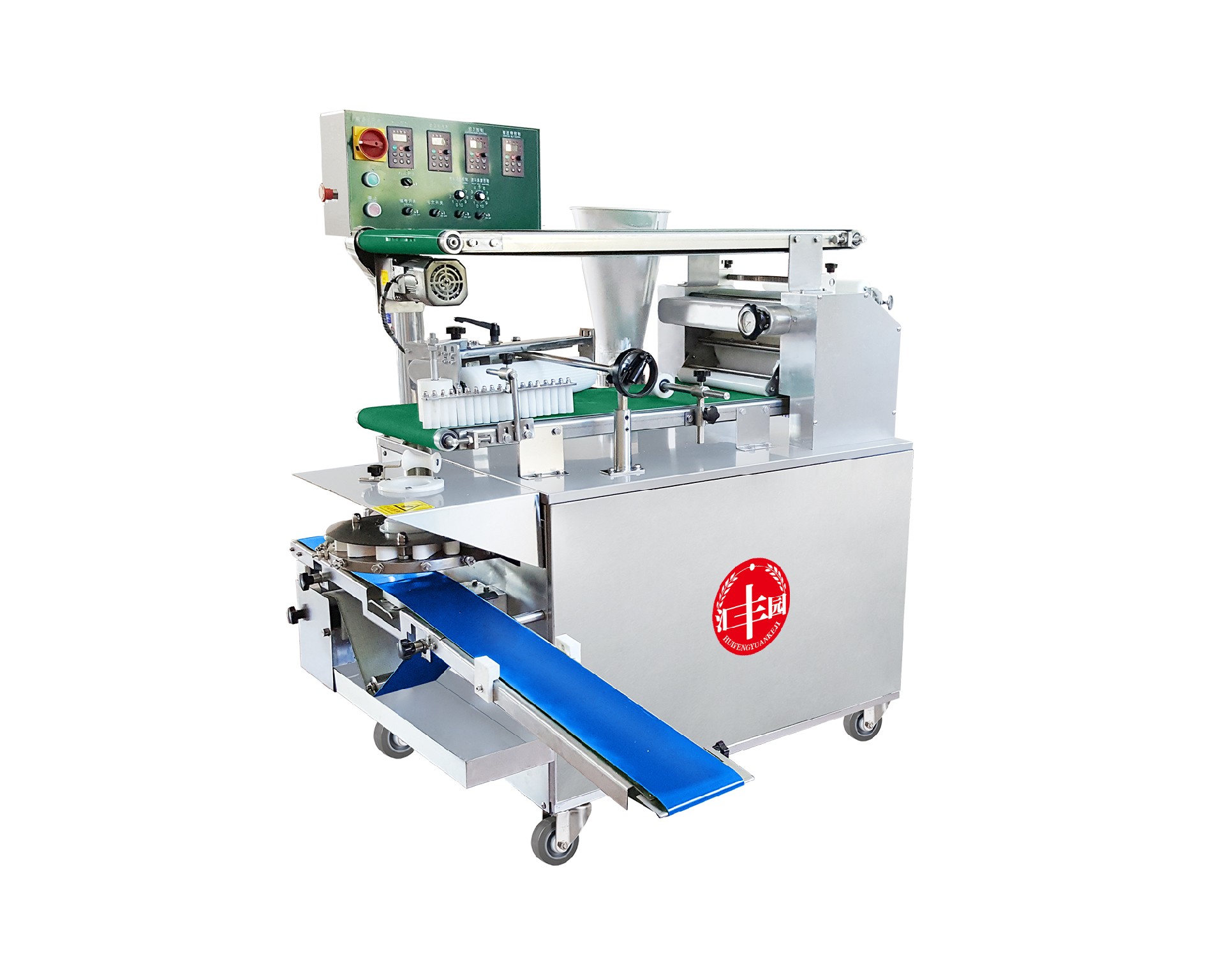 仿手工包子機采用仿手工搟面的方式將面皮壓成合適厚度。再由出餡部分將餡料填充至面皮上,經(jīng)由卷面部分卷成圓柱形狀,傳送至成型部分成型,過程中不會破壞面皮筋性,保持手工原味。全機的工作部分主要由:送面系統(tǒng)、壓面系統(tǒng)、送餡系統(tǒng)、卷面系統(tǒng)、成型等五部分組成。工作流程:供餡料斗-〉供面斗)-〉包制-〉切斷成型-〉傳送帶-〉醒發(fā)-〉蒸制;優(yōu)勢:自帶壓面系統(tǒng),采用壓面輥漸進仿手工搟面方式將面皮壓成合適厚度,整個過程不會破壞面皮筋性。面皮柔軟筋道。 可加配值可生產(chǎn):餡餅和方型饅頭、圓饅頭等。成型盤采用軸承傳送,配合刀塊張合防止以前包子機做大包子成型堵面現(xiàn)象。有9褶或12褶和16褶花型供用戶選擇,進口高分子材料刀塊利用科學原理均衡受力減小,解決了其它包子機成型刀塊靠一塊主刀推動其它副刀運動易磨損,刀夾面粘面,易受天氣變化而熱脹冷縮不能正常生產(chǎn)的難題,促進機器穩(wěn)定延長使用壽命。